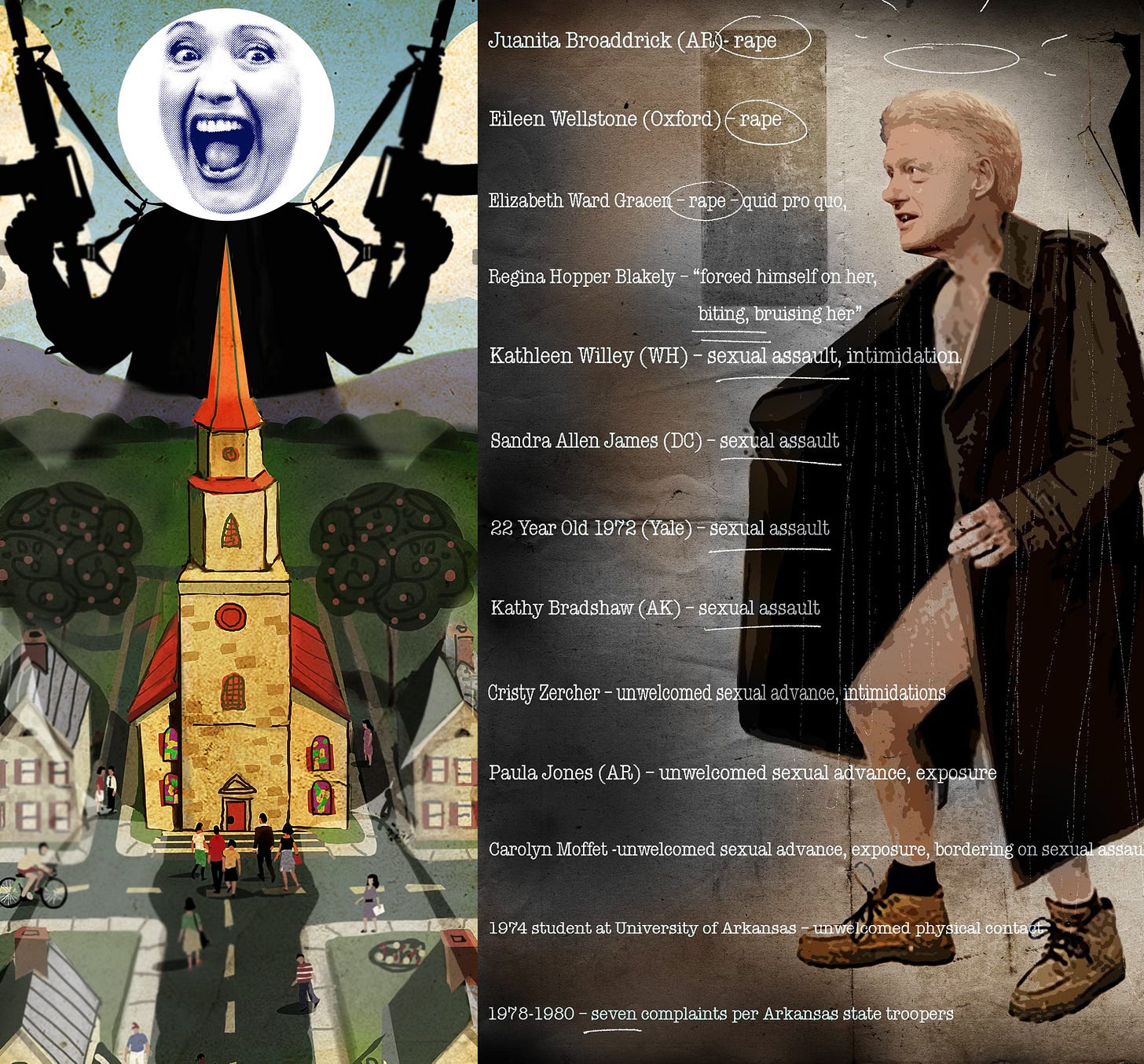 What can I say about our venerated former President and almost President, Bill and Hillary Clinton? The reputations of these paragons of moral virtue and humble civil service are without blemish. Now, we know that Bill flew to Epstein’s Island 26 times, but everyone deserves a Holiday in the tropics! Yes, they may have accrued hundreds of millions of dollars through their foundation shenanigns and yeah, a lot women have filed sexual assault charges against Bill, but we can’t believe all women, can we?
